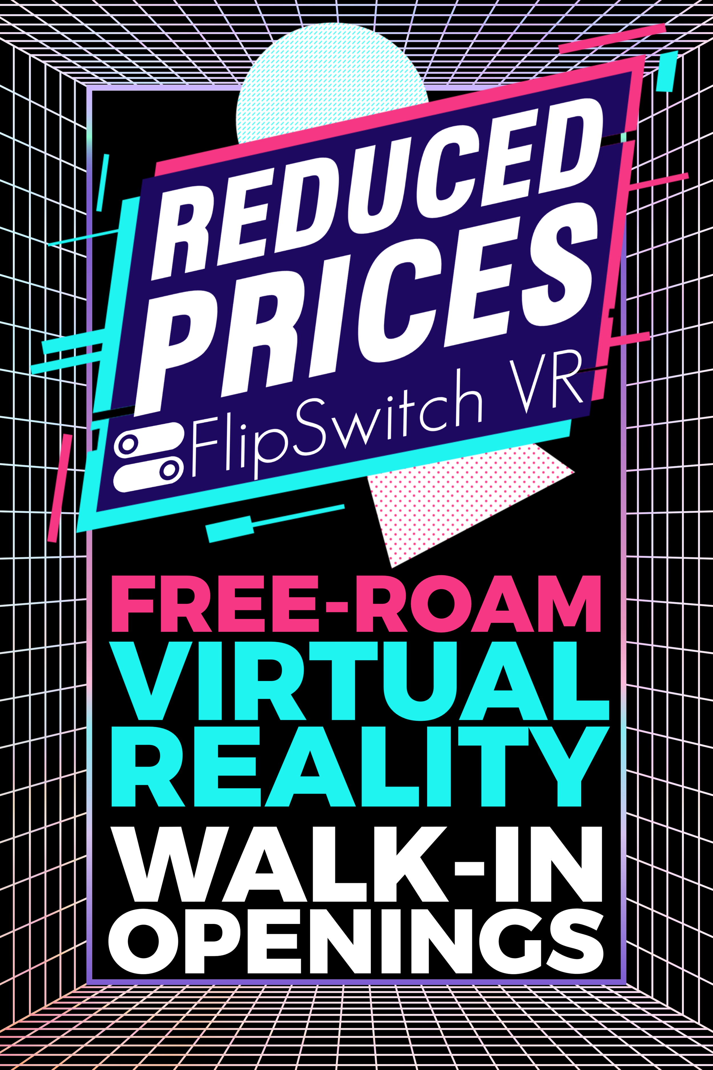 Large poster design advertising walk-in openings made for FlipSwitch VR