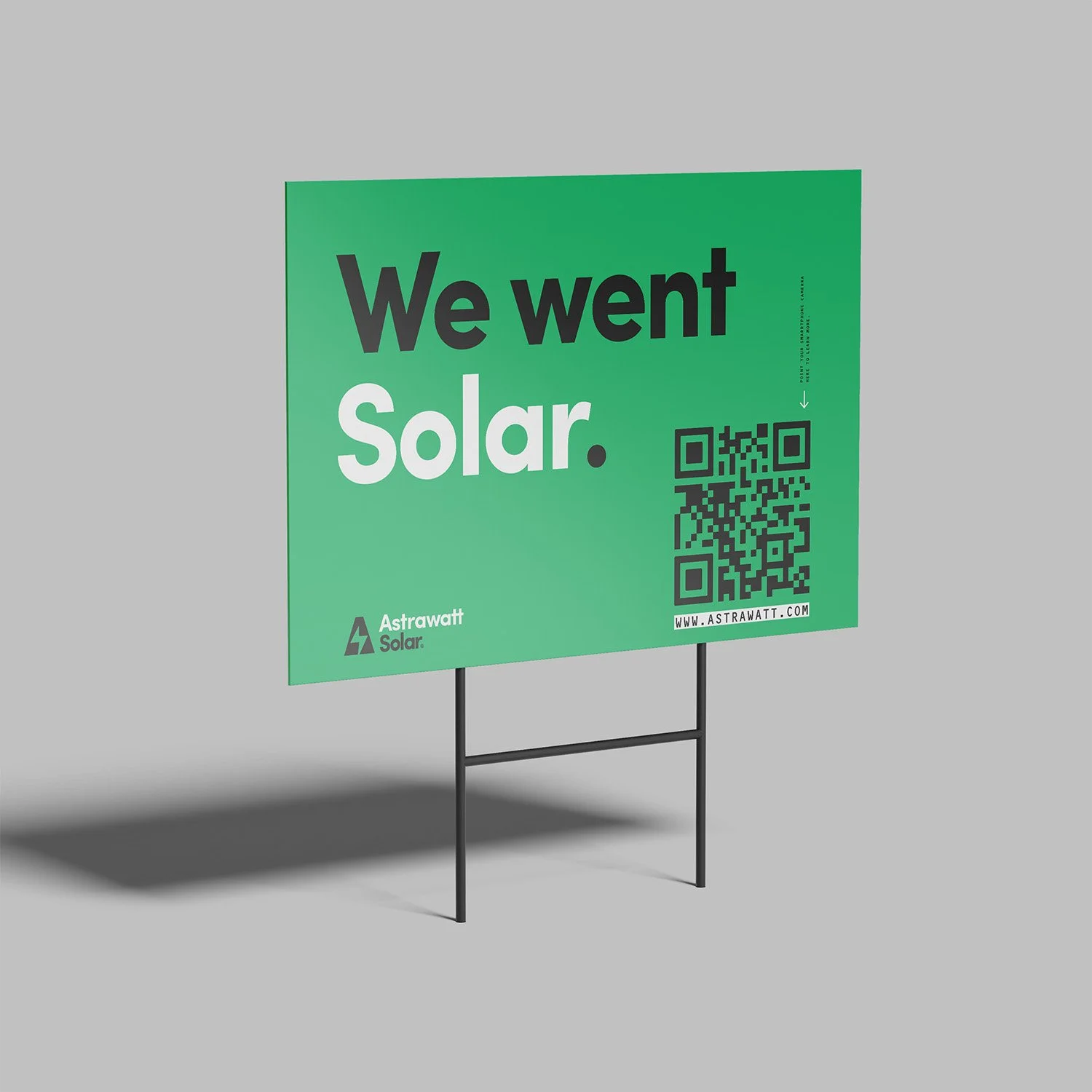 QR-code trackable yard sign for Astrawatt Solar customers.